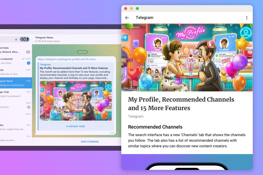 텔레그램의 크로스플랫폼 데스크탑 앱은 이제 웹사이트에 대한 즉시 보기를 지원하여, 페이지와 모든 미디어를 앱에서 로딩 시간 없이 직접 열 수 있습니다.