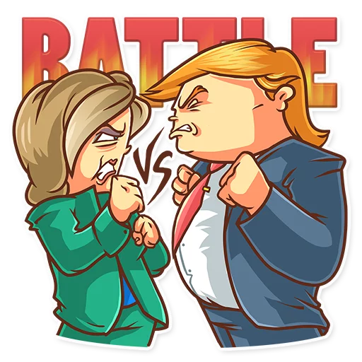 치열했던 미국의 대선! 힐러리와 트럼프의 풍자적인 표정과 라이벌 구도를 담은 스티커입니다.