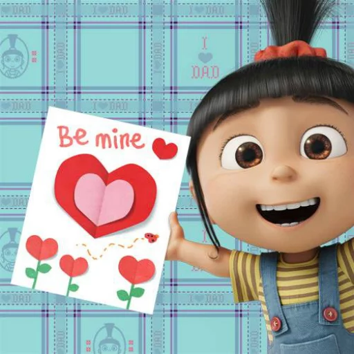 일루미네이션의 메가 히트 애니메이션 '슈퍼배드(Despicable Me)' 시리즈의 진정한 힐링 담당, 막내딸 아그네스! 양갈래 머리를 위로 묶고 유니콘 인형을 안고 다니는 순진무구함이 무기입니다. 특히 "너무 푹신해!(It's so fluffy!)"라고 외치며 흥분하는 귀여운 모습은 전 세계 이모티콘 유저의 기본 장착템이죠. 귀여운 동물 사진이나 마음에 드는 선물을 받았을 때, 얼굴이 터질 듯 감격하는 아그네스의 짤방으로 엄청난 행복감을 인증하세요.